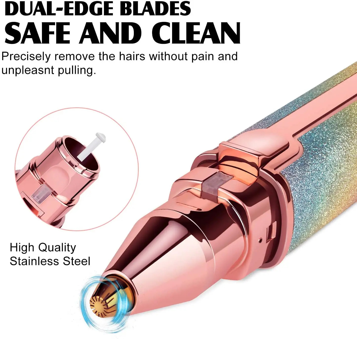 This 2-in-1 eyebrow trimmer and facial epilator feature two distinct trimming heads for comprehensive grooming. The sharp, pointed tip is ideal for shaping, defining, and maintaining your eyebrows. Whether you want to lift, arch, or trim, this precision tool makes eyebrow grooming effortless and accurate. The flat-head shaver is specifically designed for removing hair from larger surface areas like cheeks, the upper lip, chin, and even body hair from fingers, toes, and bikini lines. This multi-functional design saves you time and space, as you don’t need separate devices for different grooming tasks.