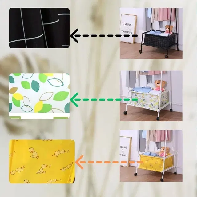 One of the standout features of this clothes stand is its large basket, offering ample storage for folded clothes, bags, shoes, or any other essentials you want neatly organized. Gone are the days of cluttered spaces—this stand brings a sense of order and tidiness to your surroundings.