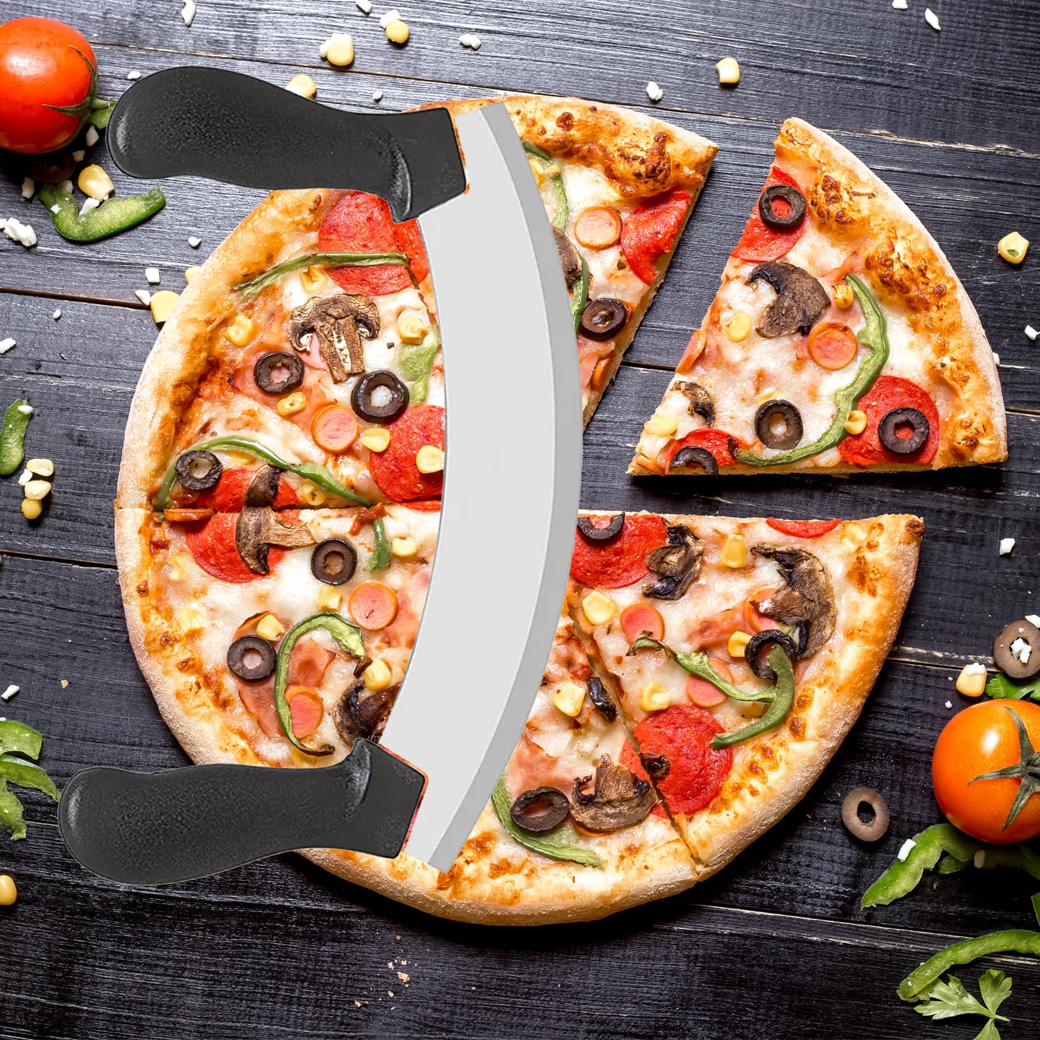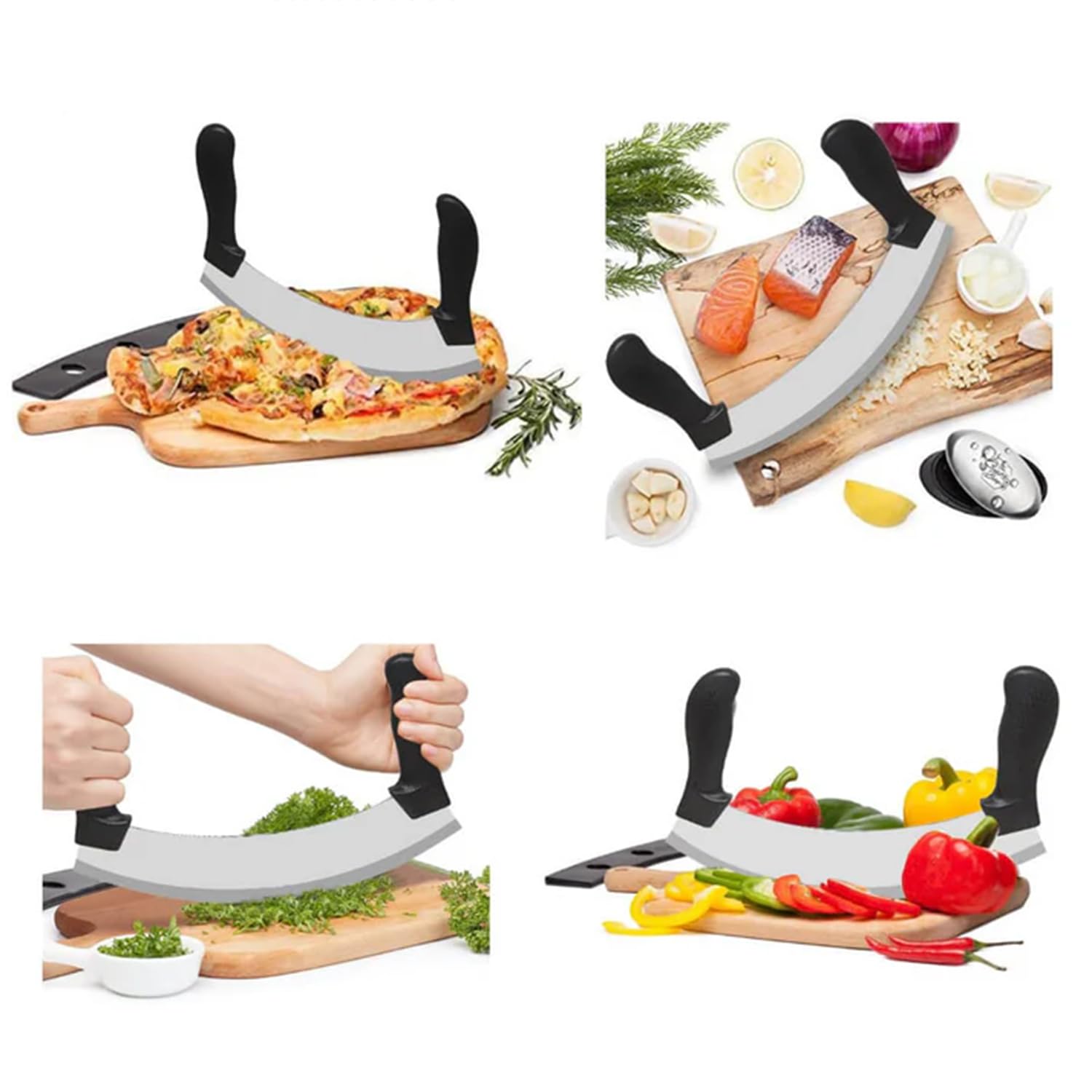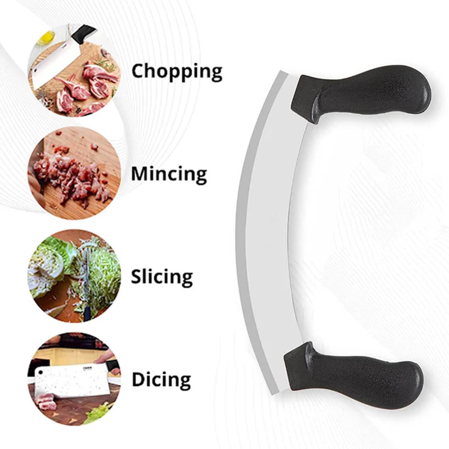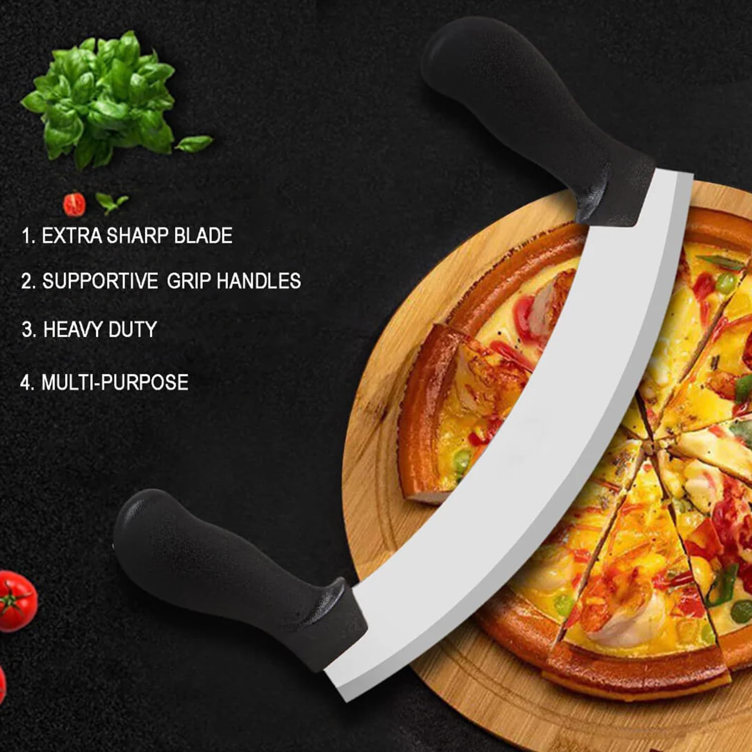 Elevate your kitchen experience with the Dual Handle Stainless Steel Knife Blade with Protective Cover—an essential addition to every home chef’s toolkit. Expertly designed with dual handles for maximum control and precision, this versatile cutter is perfect for a variety of kitchen tasks. Effortlessly slice through pizza, garlic bread, naan, parathas, and grilled sandwiches with smooth, even cuts. Its sturdy stainless steel blade is not just for slicing; it excels at mincing and chopping leafy vegetables, meat, chicken, and more, ensuring perfect consistency every time.