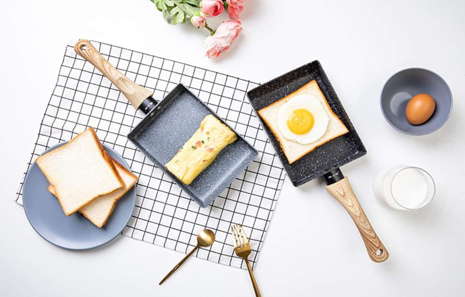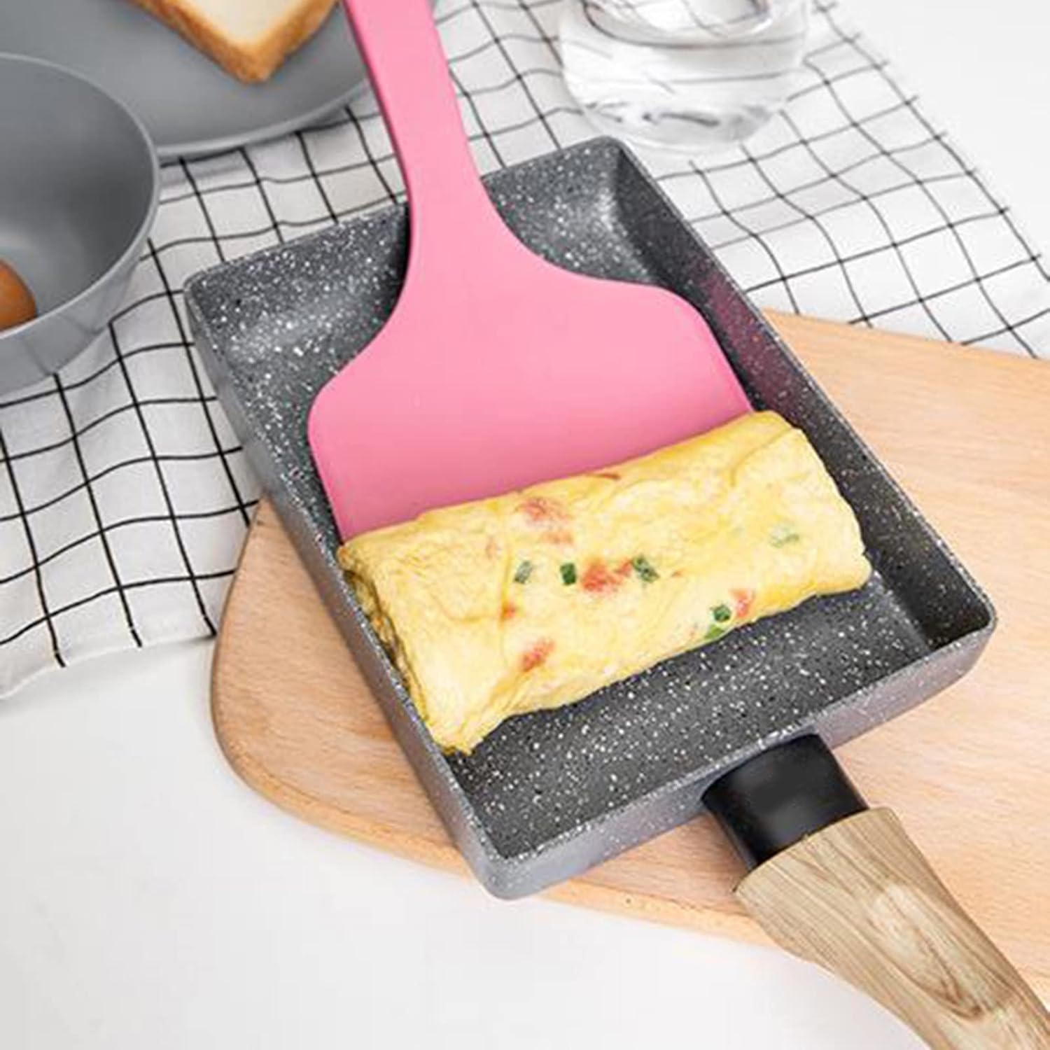 This premium non-stick frying pan is specially designed for making Japanese rolled omelettes, but also works perfectly for frying eggs, sandwiches, and even pancakes. Crafted from durable aluminum alloy with a maifanite stone non-stick coating, it ensures effortless food release and easy cleaning, while promoting healthier cooking with little to no oil.
